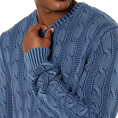 سترة رجالية محبوكة برقبة دائرية من القطن الناعم المقلية